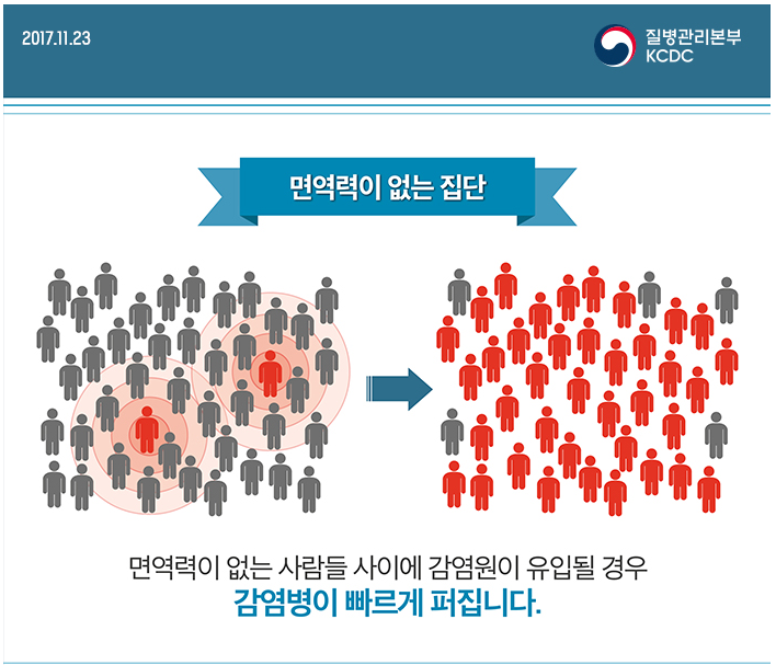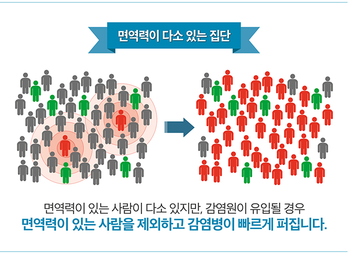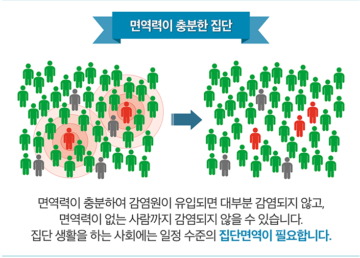 간단하게 말하자면 면역력이 있는 사람들이 면역력이 없는 사람들의 감염을 막아준다고 생각하시면 됩니다.
